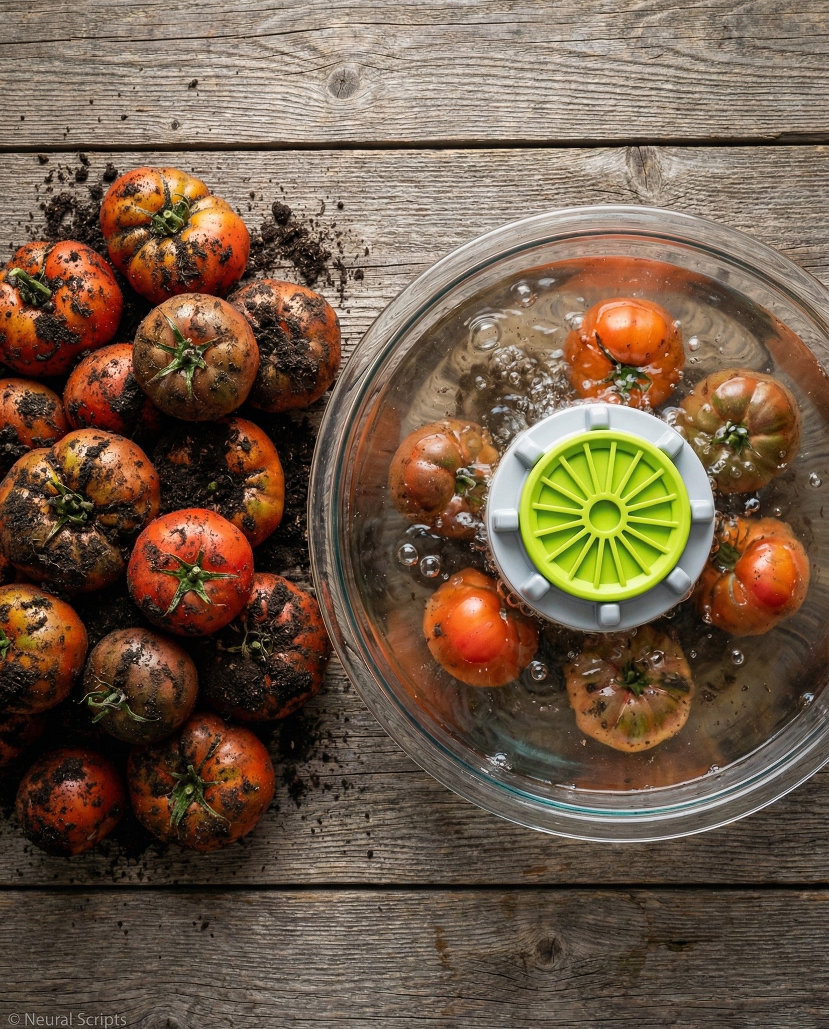 Bir kabı suyla doldurun, meyve veya sebzeleri içine koyun ve cihazı suya yerleştirip çalıştırın. Ortalama 5-10 dakika içinde temizlik tamamlanır.